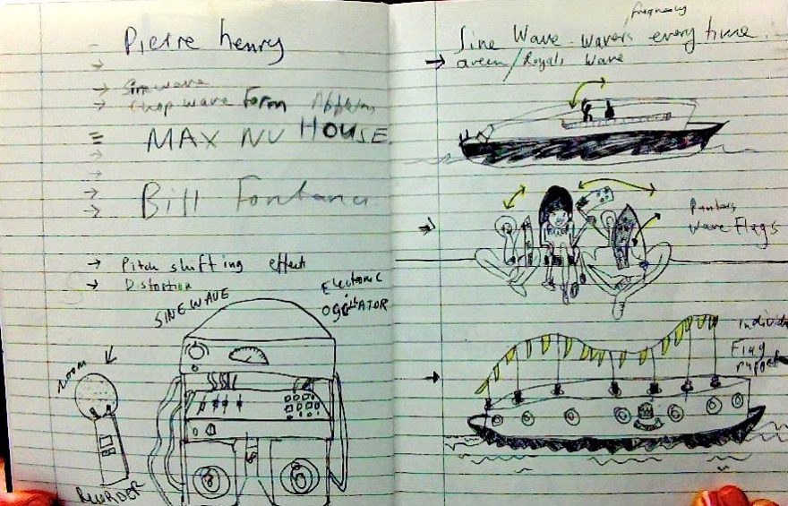 Georgia Lucy wiggles a sine wave to footage of the royal visit to Tasmania. As the royals wave to the crowd, Georgia manipulates the sine wave. A sine wave is any oscillation, such as a sound wave or alternating current, whose waveform is that of a sine curve.