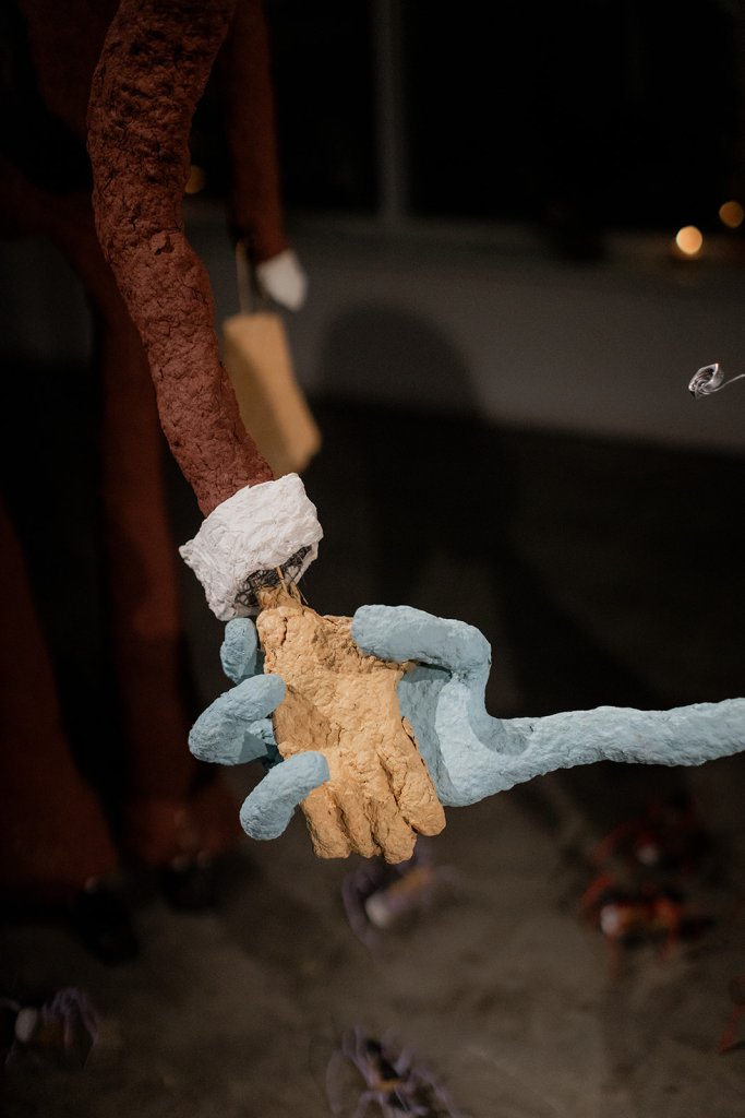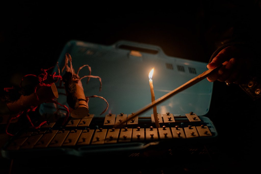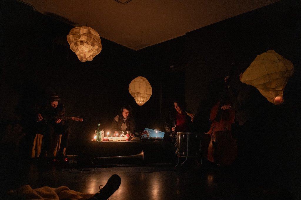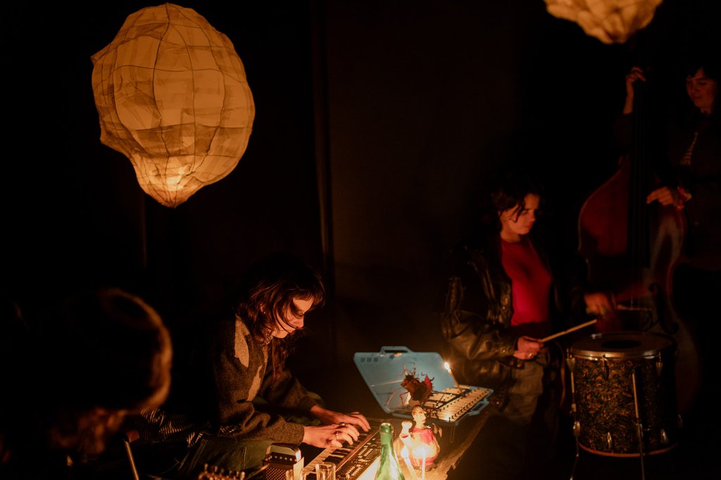 For the special event Mum, Jakira (Mum’s carer, and Dad’s, a bloody legend and now a family member) and our brother Patrick came down to Tasmania from Newcastle. A loving audience became the show. Phone torches made dancing shadows of the ant bonbons. There was a body percussion troupe. A trombone appeared. A wok hit with a wooden spoon. Mango lanterns lit with Banda candles, the warmest of flames. Chris Bury built a custom ramp so Mumma Kaz (who has MND) could lead the bubbling brigade in her wheelchair.