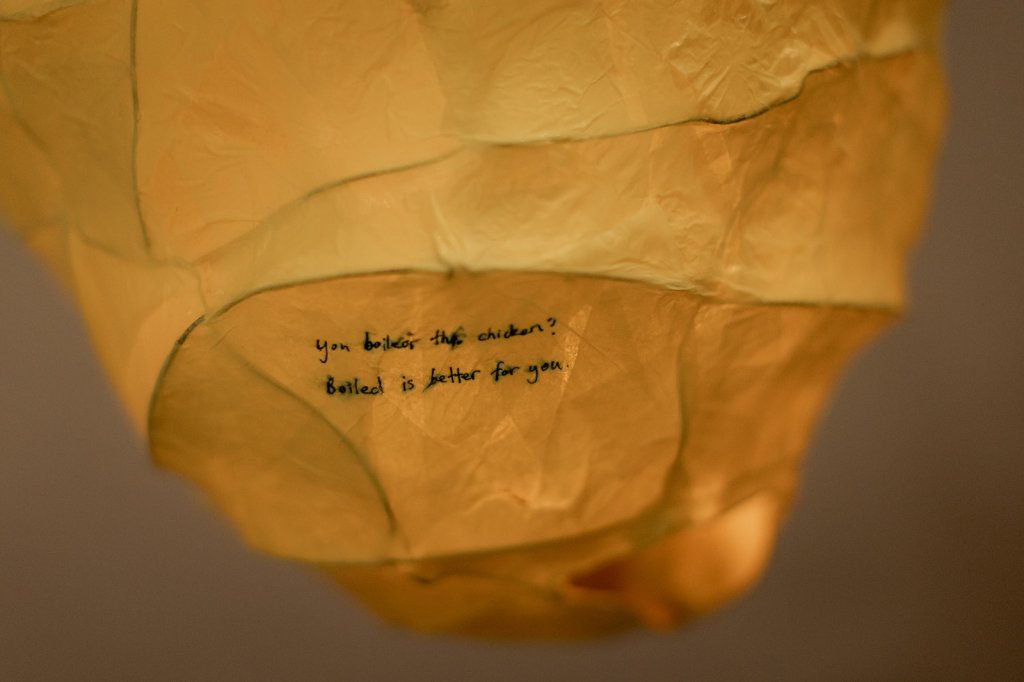 The chut was made from the ghost mangoes that miraculously fruited from the tree in the backyard when the decision to go ahead with VAD was made clear, and which ripened for a massive mango feast for Dad’s final week. Magic, because that tree had never produced mangoes before. Perfect because when you have MSA you can’t really swallow many foods, but mango is sweet and slimy and doesn’t need chewing. Maile manifested mango lanterns from the memory.