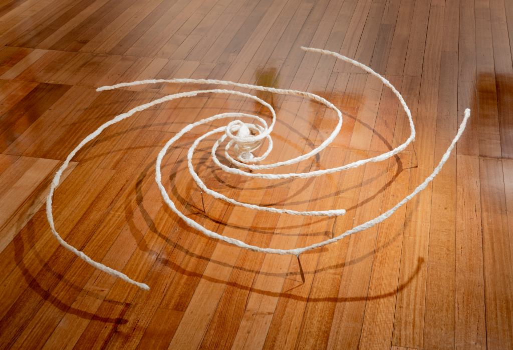 Soap Stars II is a continuation of the mobile, inspired by Carl Sagan’s 1981 Cosmos series, particularly its depiction of the Milky Way galaxy we inhabit. Rather than hang, Soap Stars II rises from the floor, reconstituting the amorphous soapy matter into spiral arms. Your position has also changed. Where before stars floated around you, you are now huge, looking down at the galaxy from above.